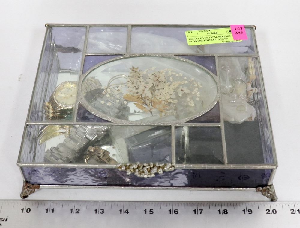 BEVELLED CRYSTAL PRESSED FLOWERS JEWELRY BOX W/