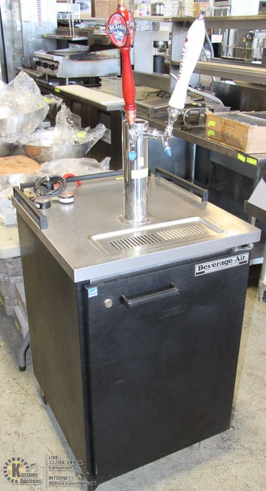 BEVERAGE AIR KEG COOLER WITH TWIN TOWER & HOOKUPS.