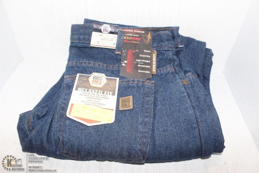 BIG BILL LINED JEAN PANTS - SIZE 34X30