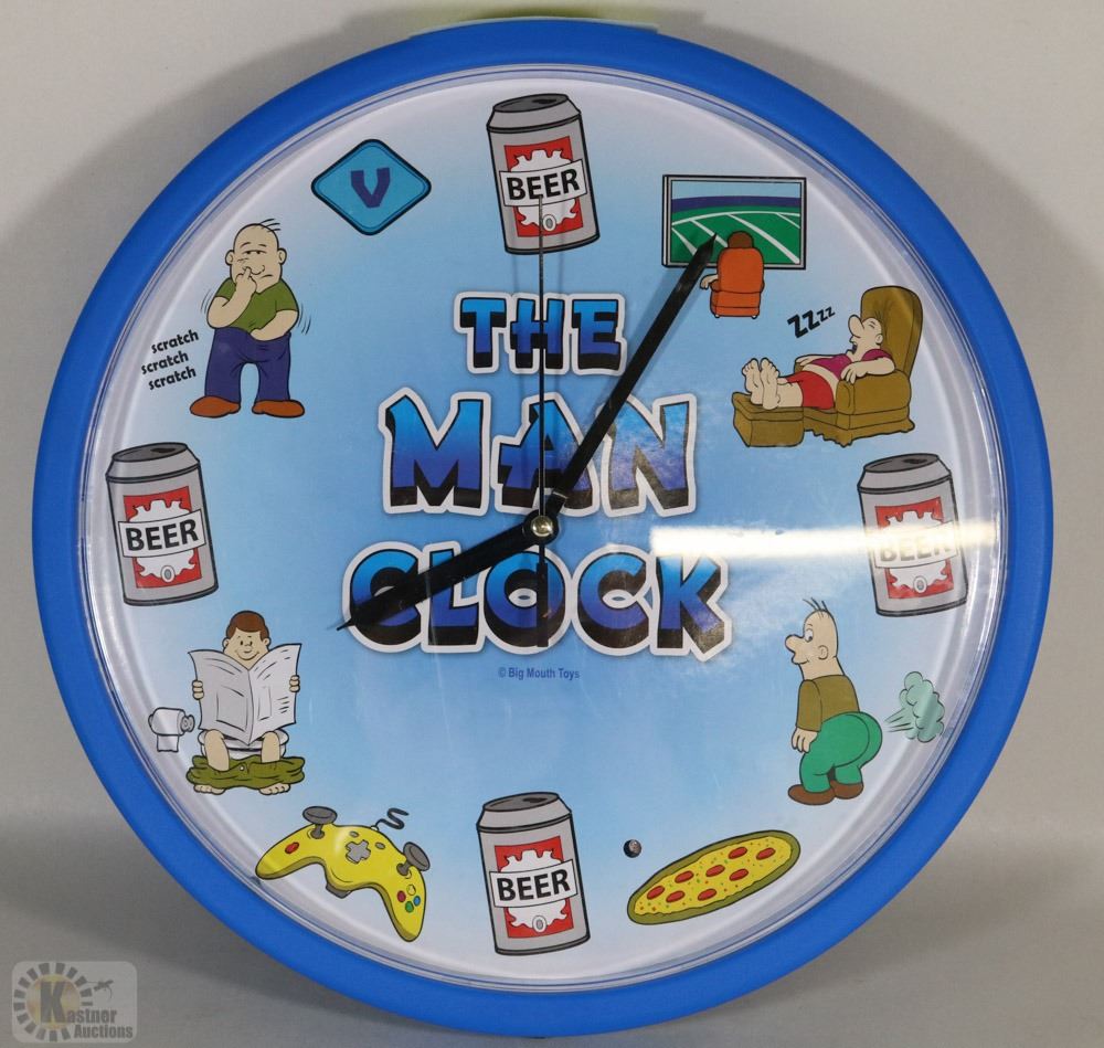 BIG MOUTH TOYS "THE MAN CLOCK" SOUNDS ON THE HOUR 11" DIAMETER