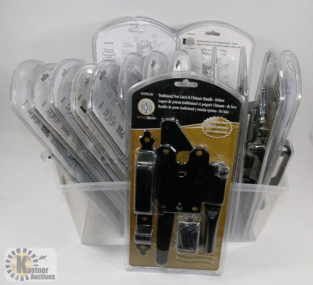 BIN OF 18 TRADITIONAL POST LATCH KITS.