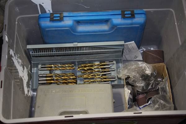 BIN OF ASSORTED DRILL BITS AND SANDING DRUMS