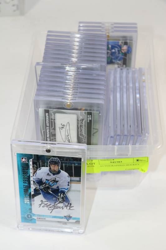 BIN OF AUTOGRAPHED HOCKEY CARDS