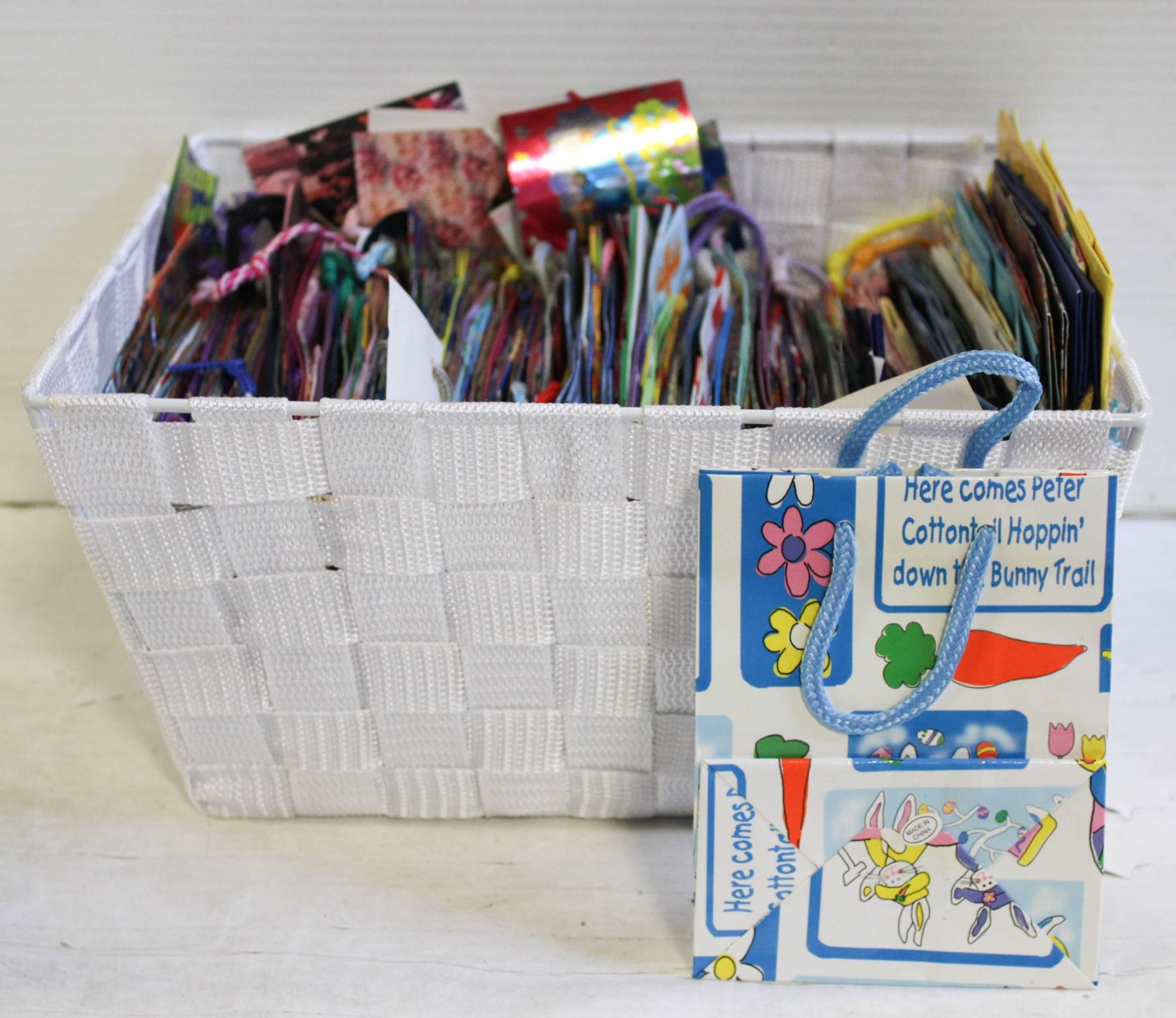 BIN WITH OVER 100 NEW SMALL SIZED GIFT BAGS