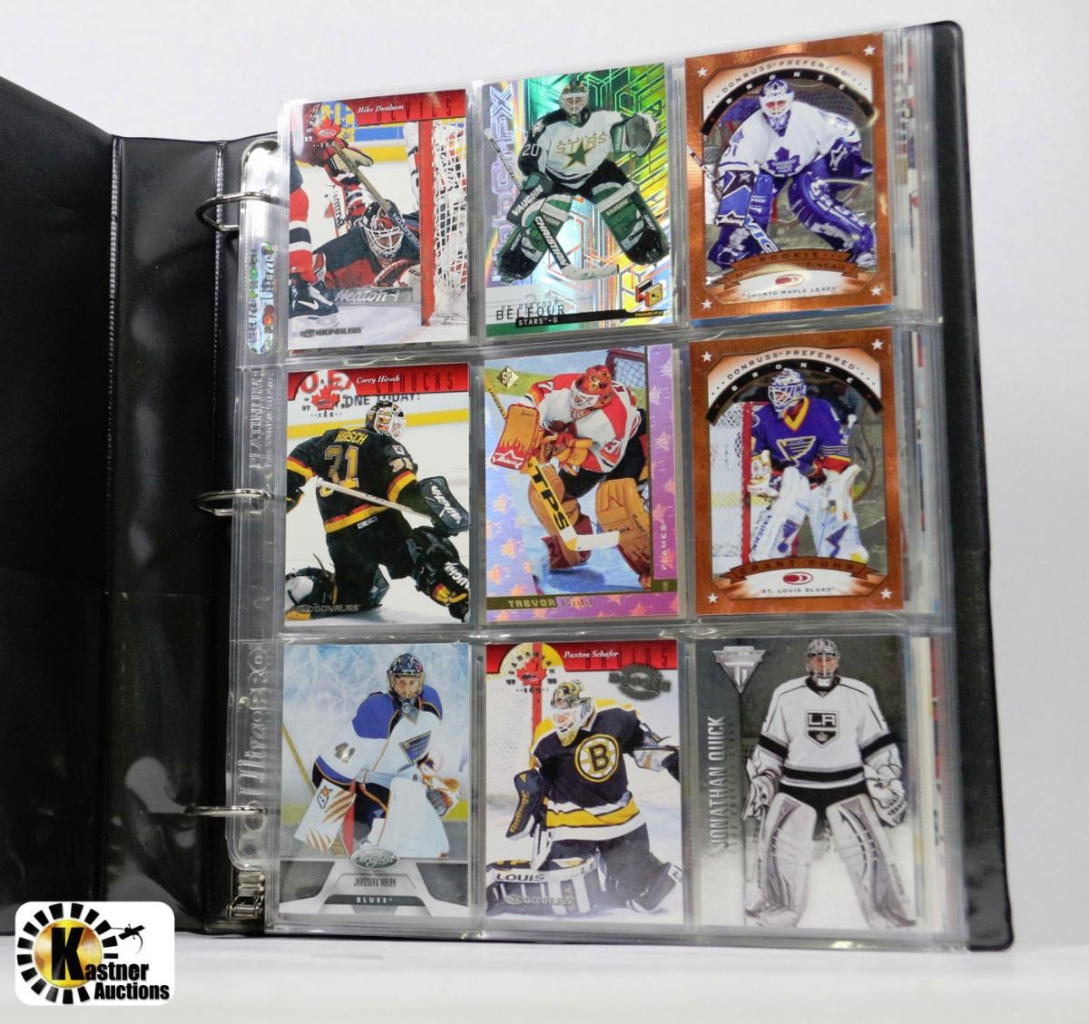 BINDER OF NHL GOALIE CARDS QUICK, ROY, BRODEUR