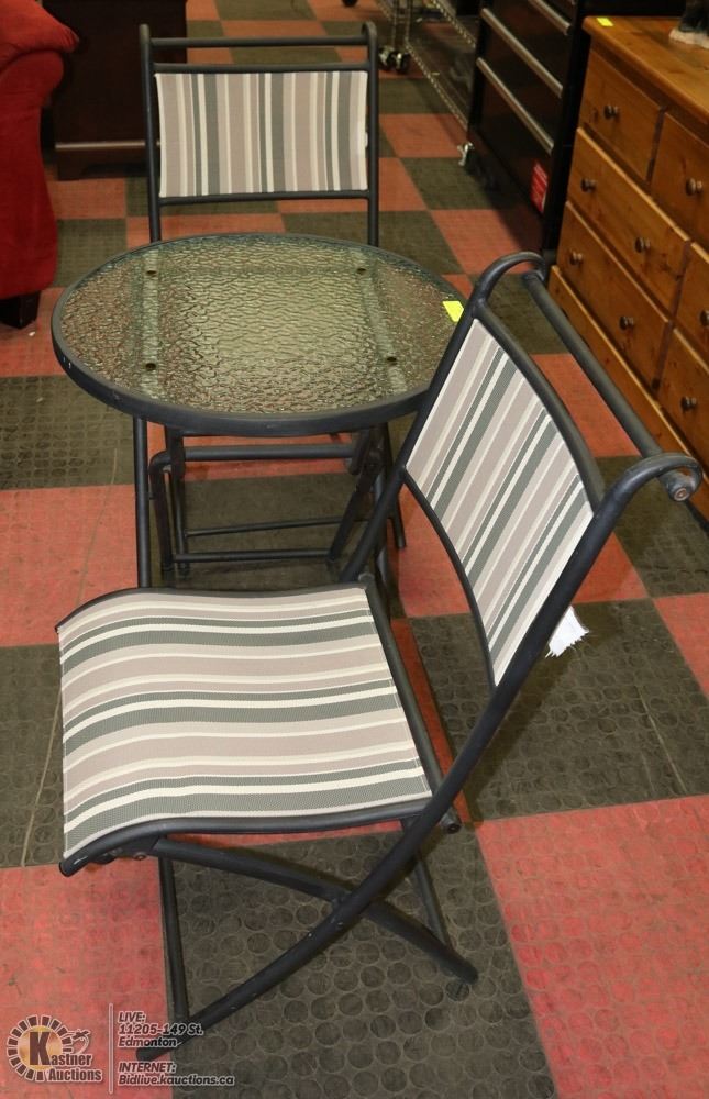 BISTRO GLASS TOP TABLE WITH 2 FOLDABLE CHAIRS