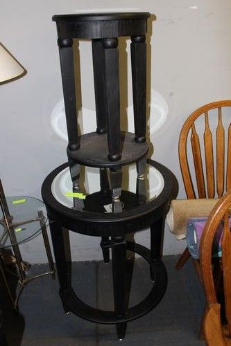 BLACK AND GLASS END TABLE WITH PLANT STAND