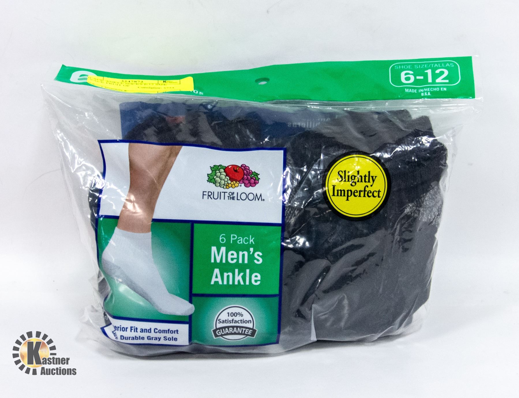 BLACK ANKLE SOCKS 6-12 SIZE 6-PACK FRUIT OF