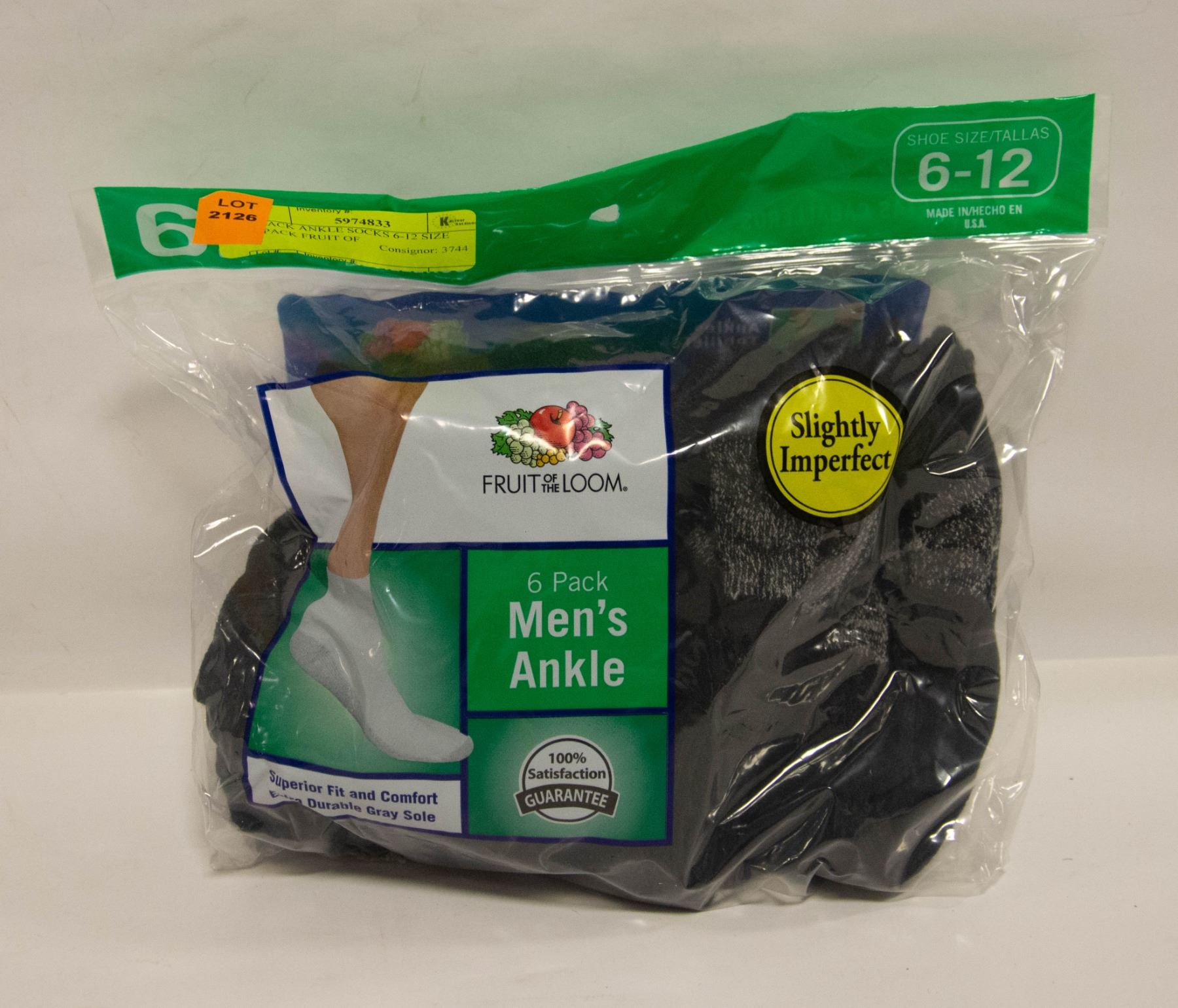 BLACK ANKLE SOCKS 6-12 SIZE 6-PACK FRUIT OF