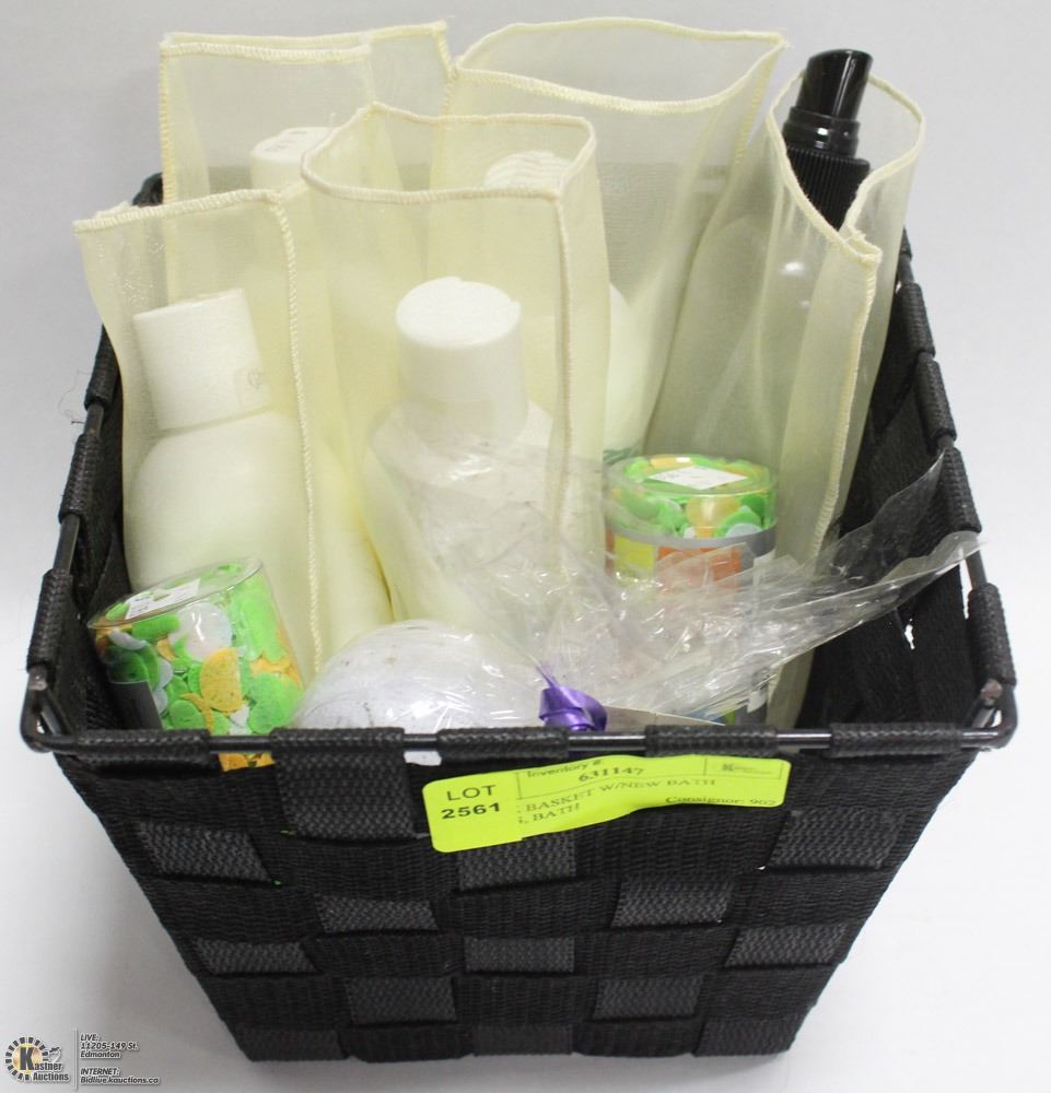 BLACK BASKET W/NEW BATH BALMS, BATH
