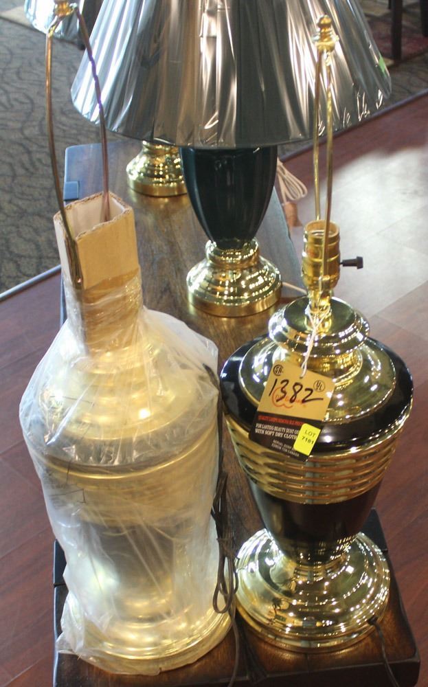 BLACK CERAMIC AND BRASS LAMPS NO SHADES