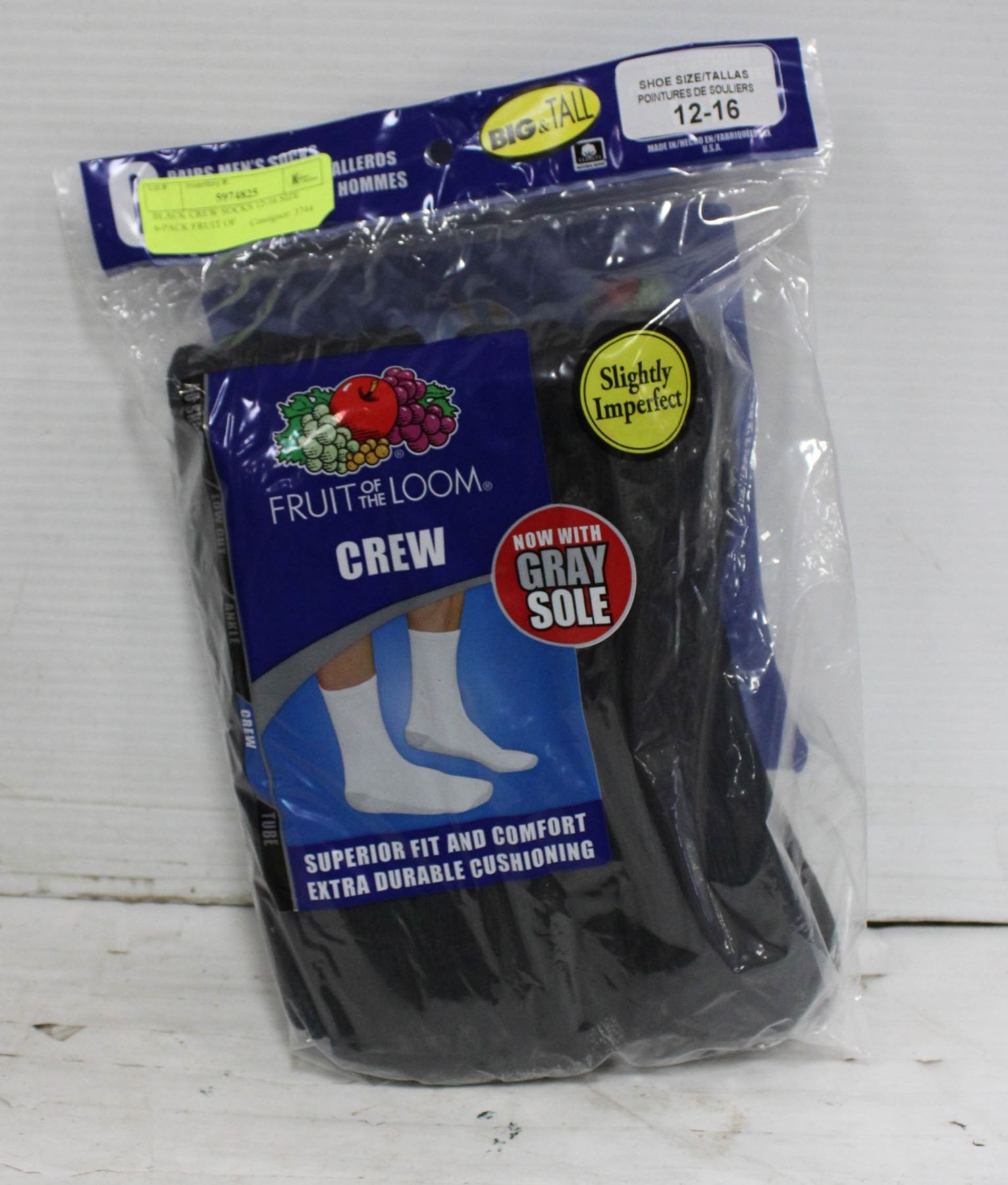 BLACK CREW SOCKS 12-16 SIZE 6-PACK FRUIT OF