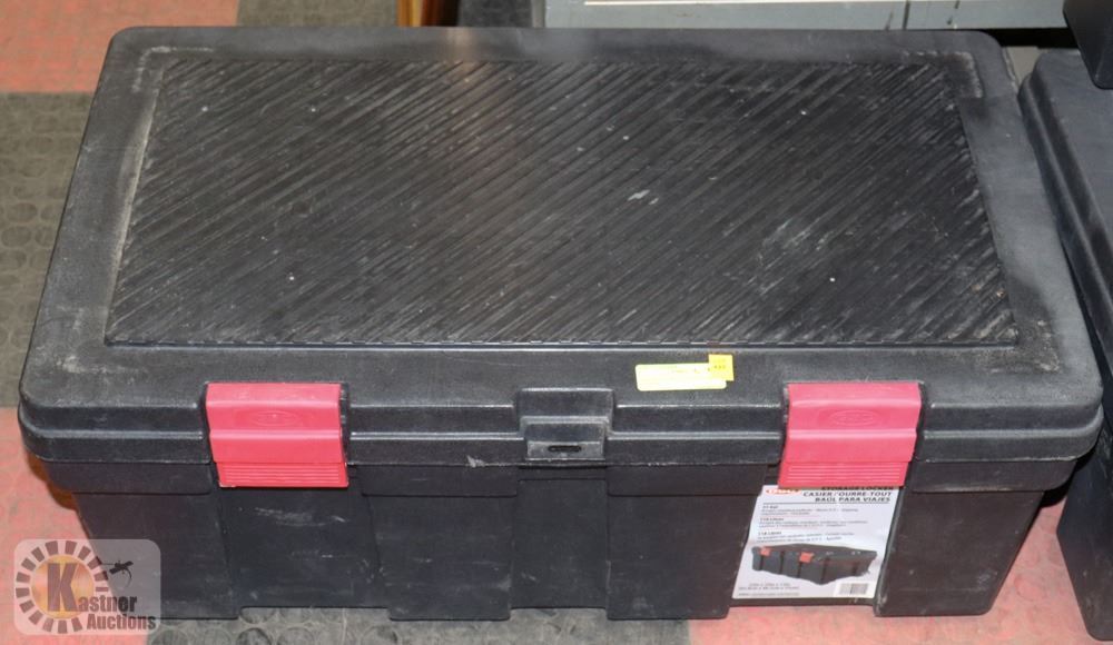 BRAND STORAGE BIN, 31GAL/118L, HINGED W/2 FRONT CLAMPS & LOCKABLE, INDOOR/OUTDOOR USE, STACKABLE (33"LX19"HX13"W) - GENERAL, HOUSEHOLD