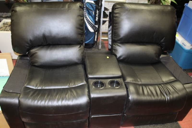 BLACK LEATHERETTE RECLINING LOVE SEAT