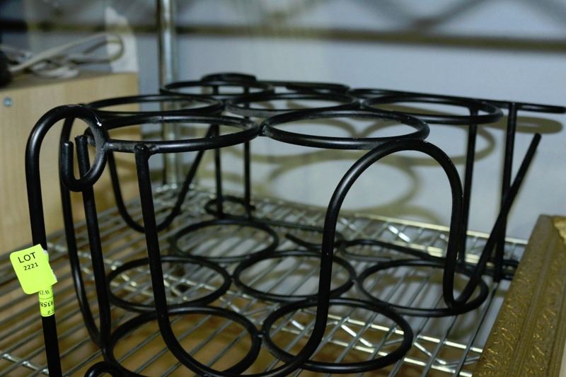 BLACK METAL WINE RACK HOLDS 6 BOTTLES