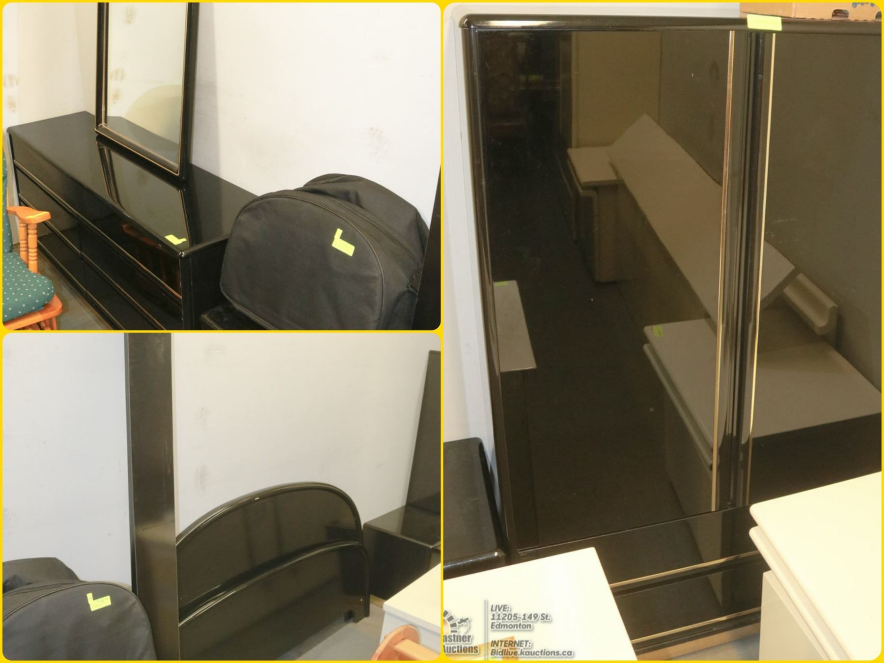 ,DRESSER WITH MIRROR, HEADBOARD AND ARMOIRE . FURNITURE