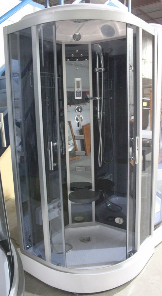 36'' X 36'' X 86'' FEATURES: STEAM, OVERHEAD LED RAIN SHOWER, HAND HELD SHOWER, BODY JET, FOOT MASSAGER, SHMPOO RACK, LED LIGHTING, RM RADIO / CD INPUT, AROMATHERAPY PORT, FOLD DOWN SEAT.RETAILS FOR $3,450