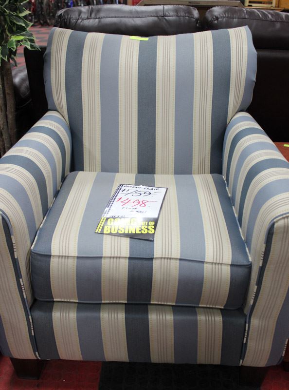 BLUE AND WHITE PIN STRIPE FABRIC ACCENT CHAIR