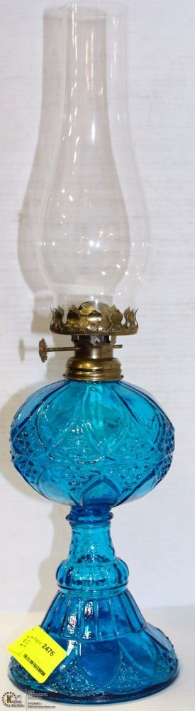 BLUE CUT GLASS OIL LAMP