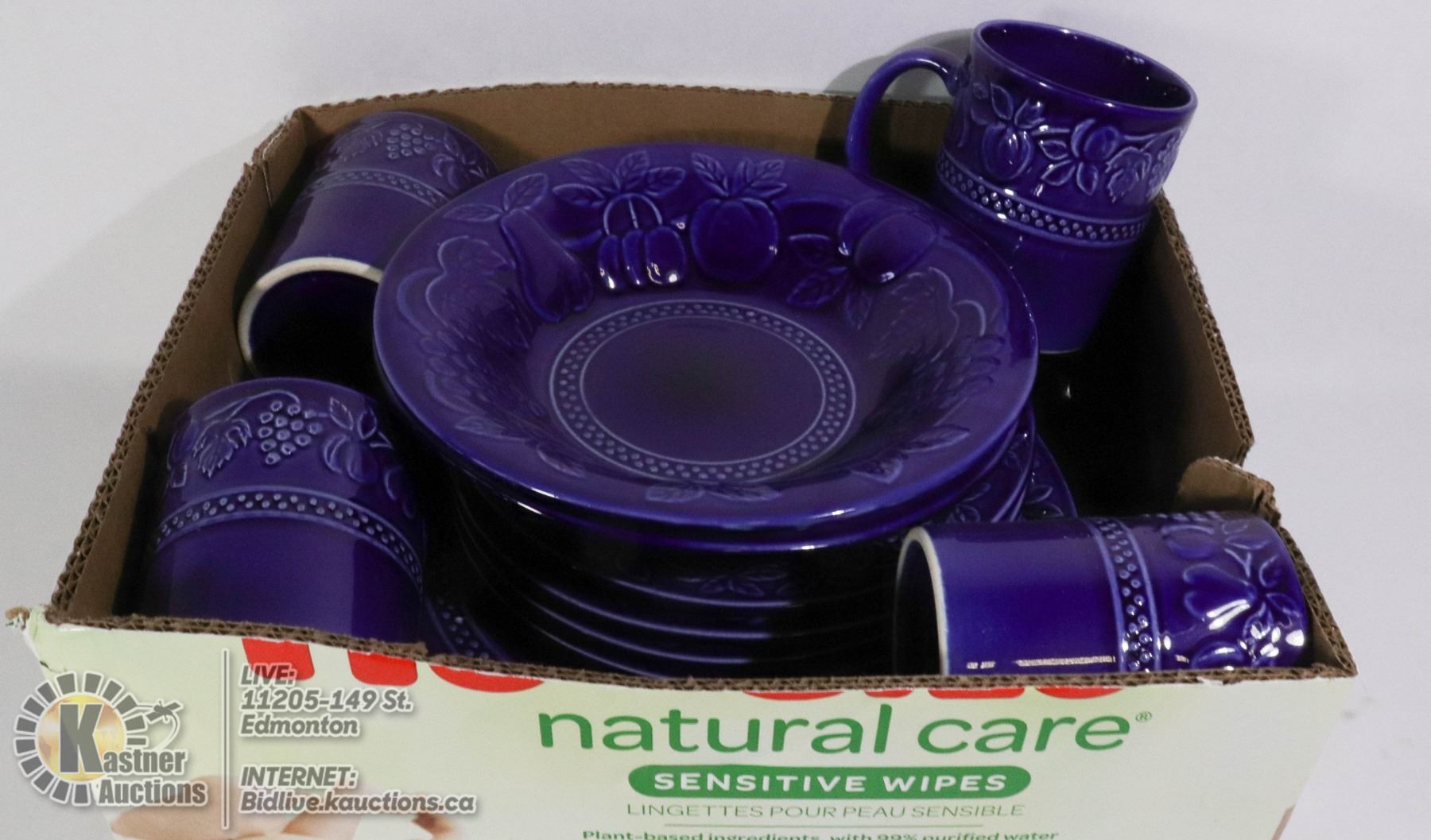 BLUE DISHES WITH FRUIT PATTERN ON THEME