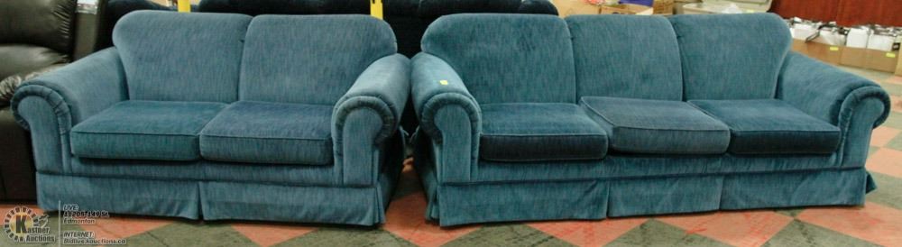 BLUE FABRIC LOVE SEAT & COUCH SET