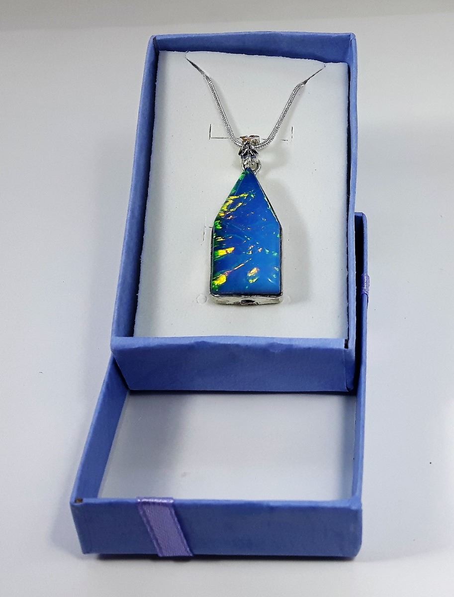 BLUE FIRE OPAL PENDANT ON 22" SNAKE CHAIN