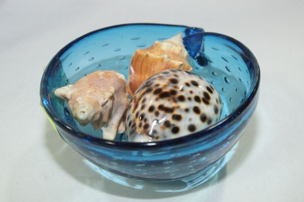 BLUE GLASS SNAIL WITH SEA SHELLS
