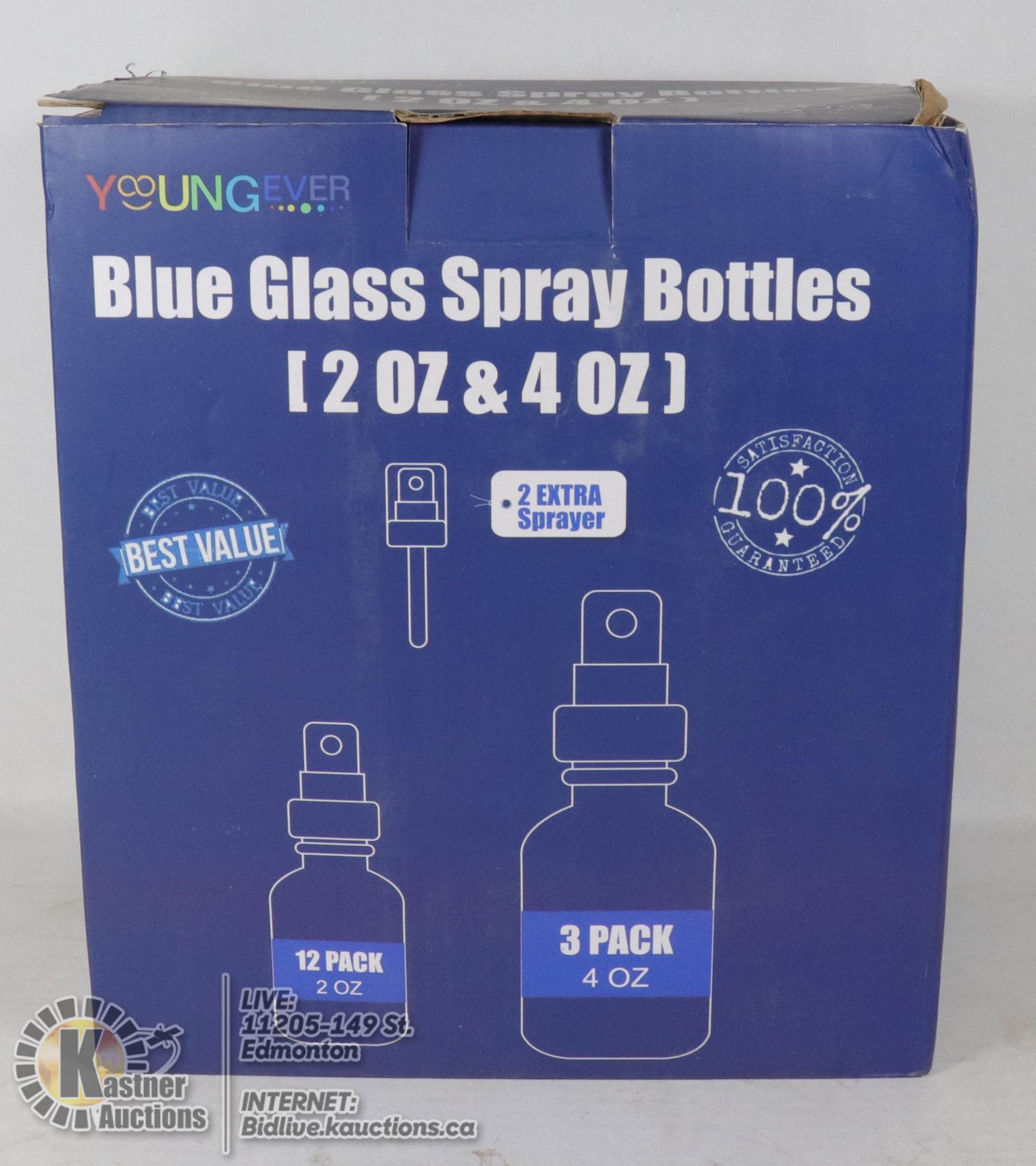BLUE GLASS SPRAY BOTTLES 12 X 2OZ, 3 X 4OZ