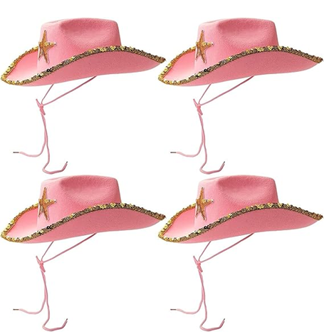 BLUE PANDA WESTERN COWBOY AND COWGIRL HATS FOR KIDS, PINK SPARKLY (4 PACK)
