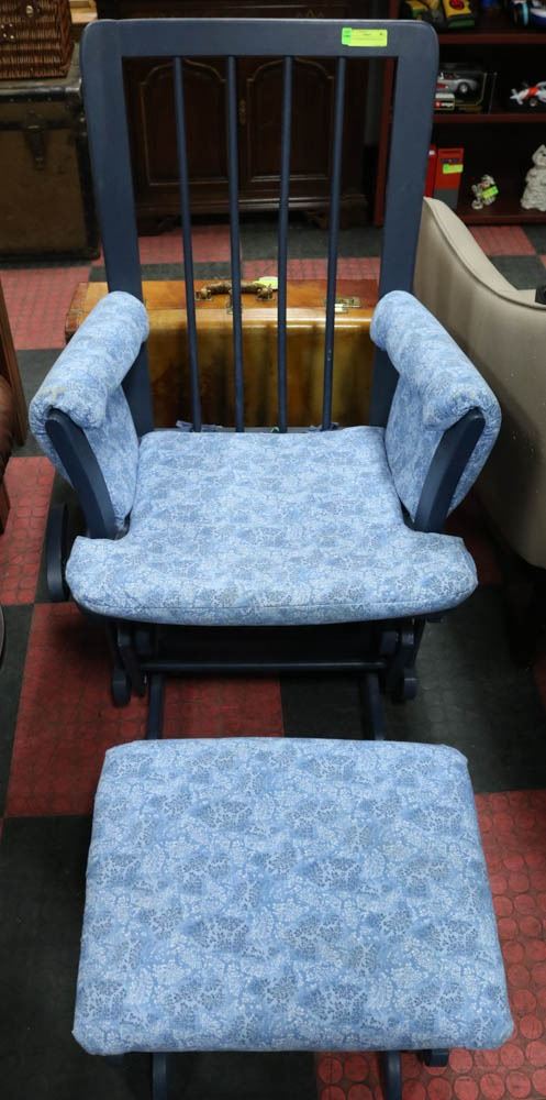 BLUE ROCKER WITH FOOT STOOL MISSING BACK CUSHION