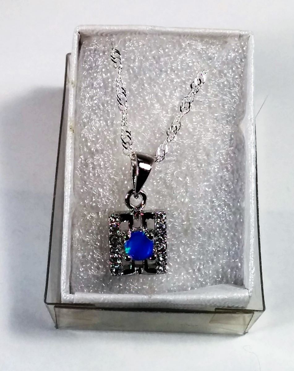 BLUE ROUND FIRE OPAL & CZ PENDANT