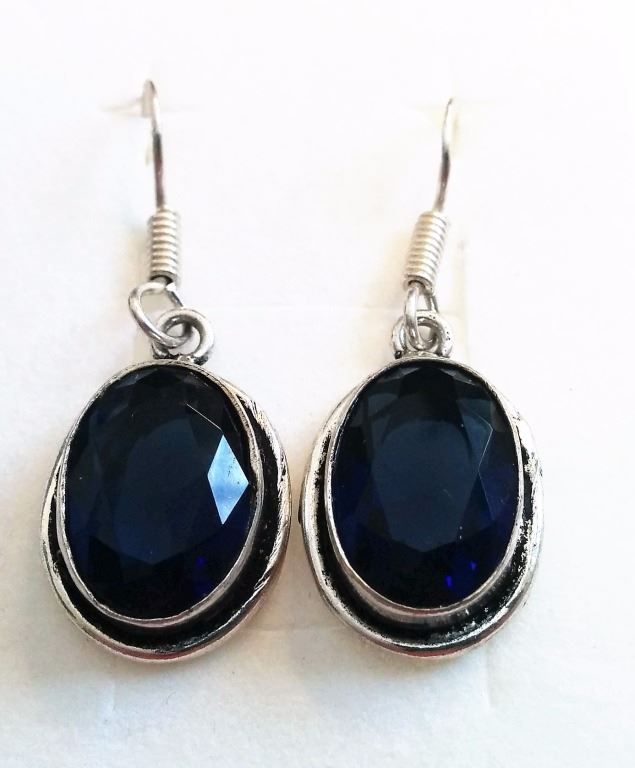 BLUE SAPPHIRE CRYSTAL EARRINGS SET IN .925