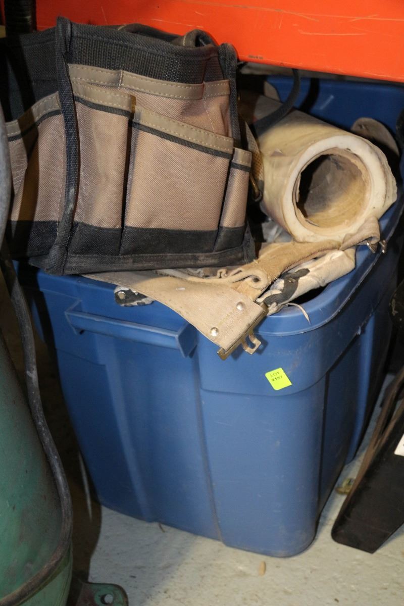 BLUE TOTE & CONTENTS INCLUDING TOOL POUCHES ETC.