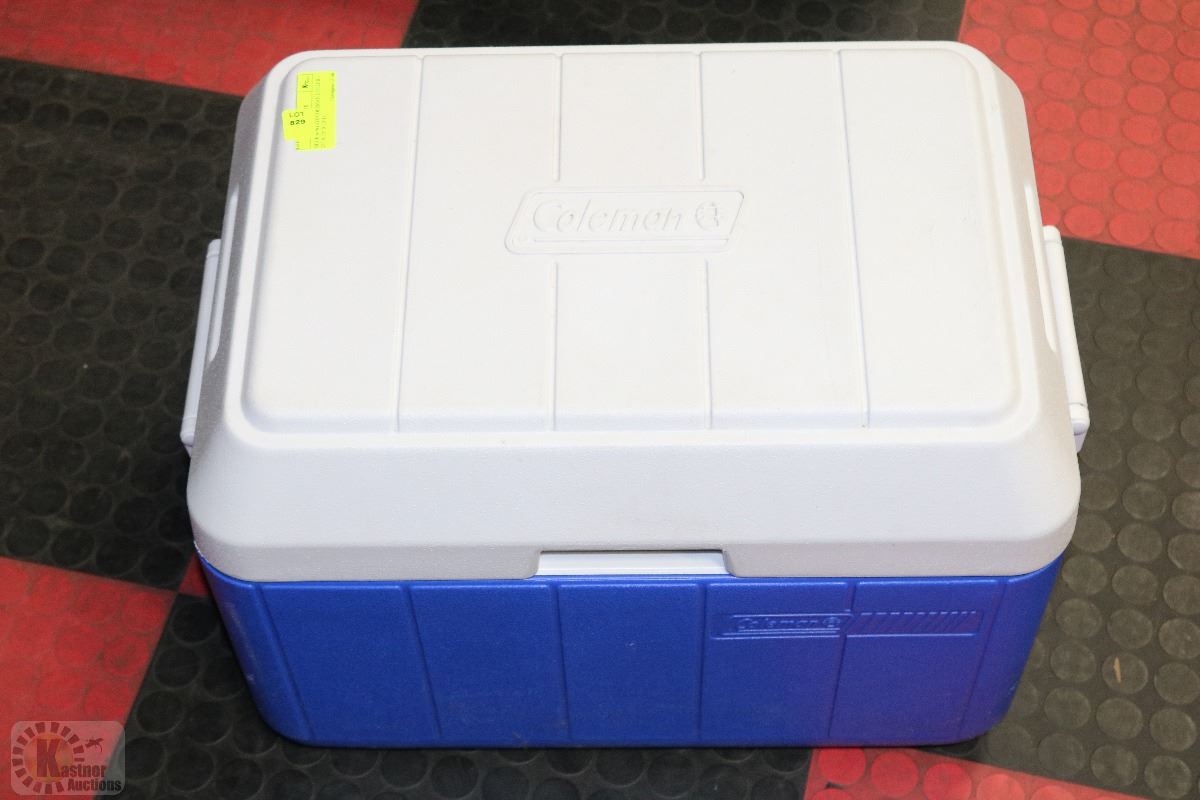BLUE & WHITE COLEMAN COOLER - 21" X 15" X 15"H