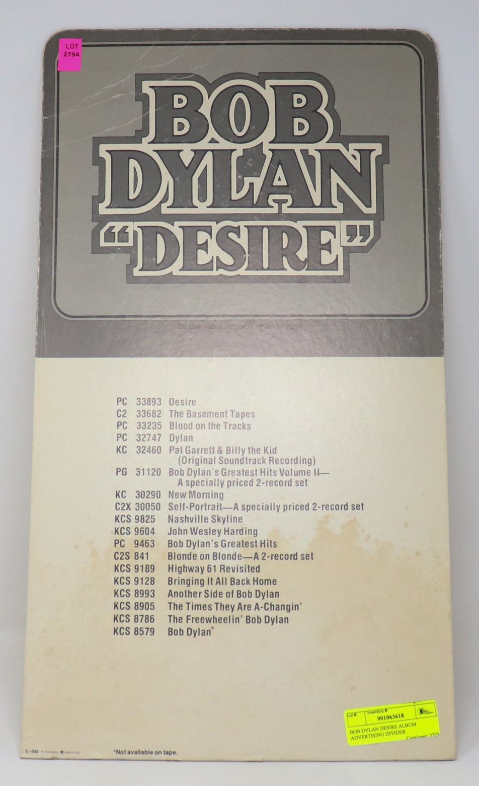 BOB DYLAN DESIRE ALBUM ADVERTISING DIVIDER