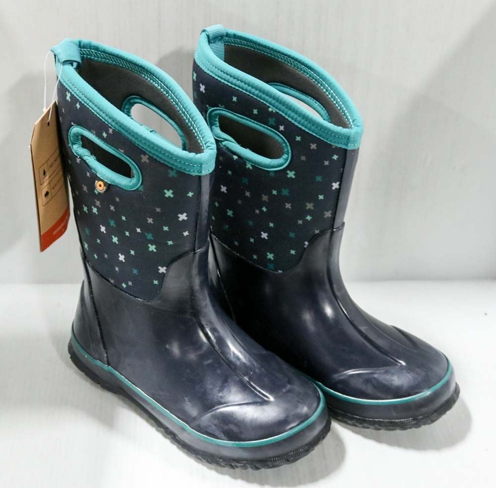 BOGS NAVY/GREEN INSULATED YOUTH RAIN BOOTS SIZE 2