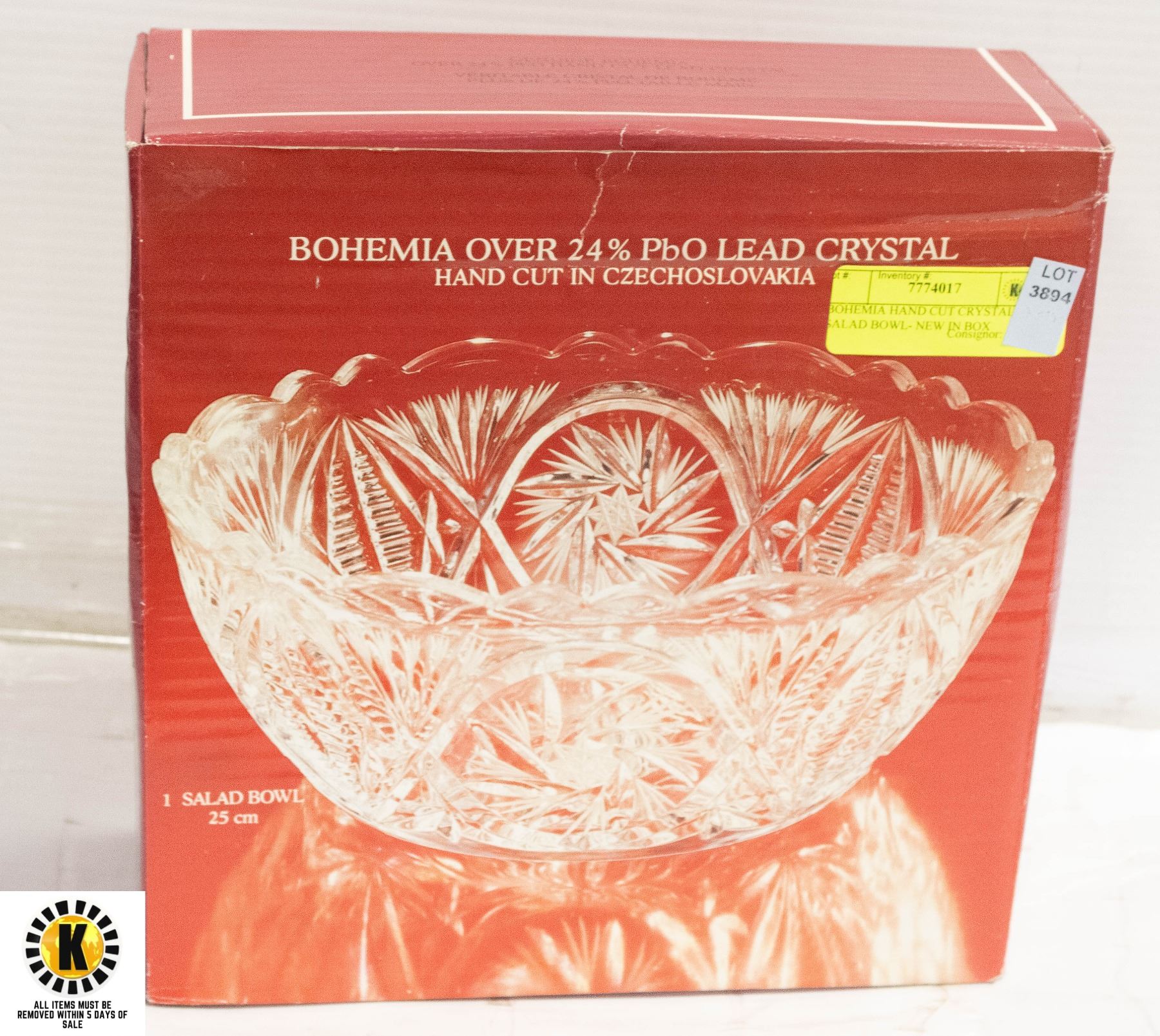 BOHEMIA HAND CUT CRYSTAL SALAD BOWL- NEW IN BOX