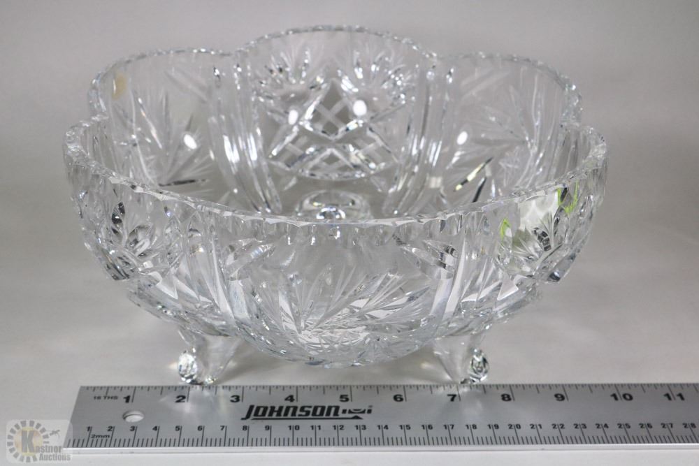 BOHEMIA PINWHEEL CRYSTAL FLORAL FOOTED BOWL
