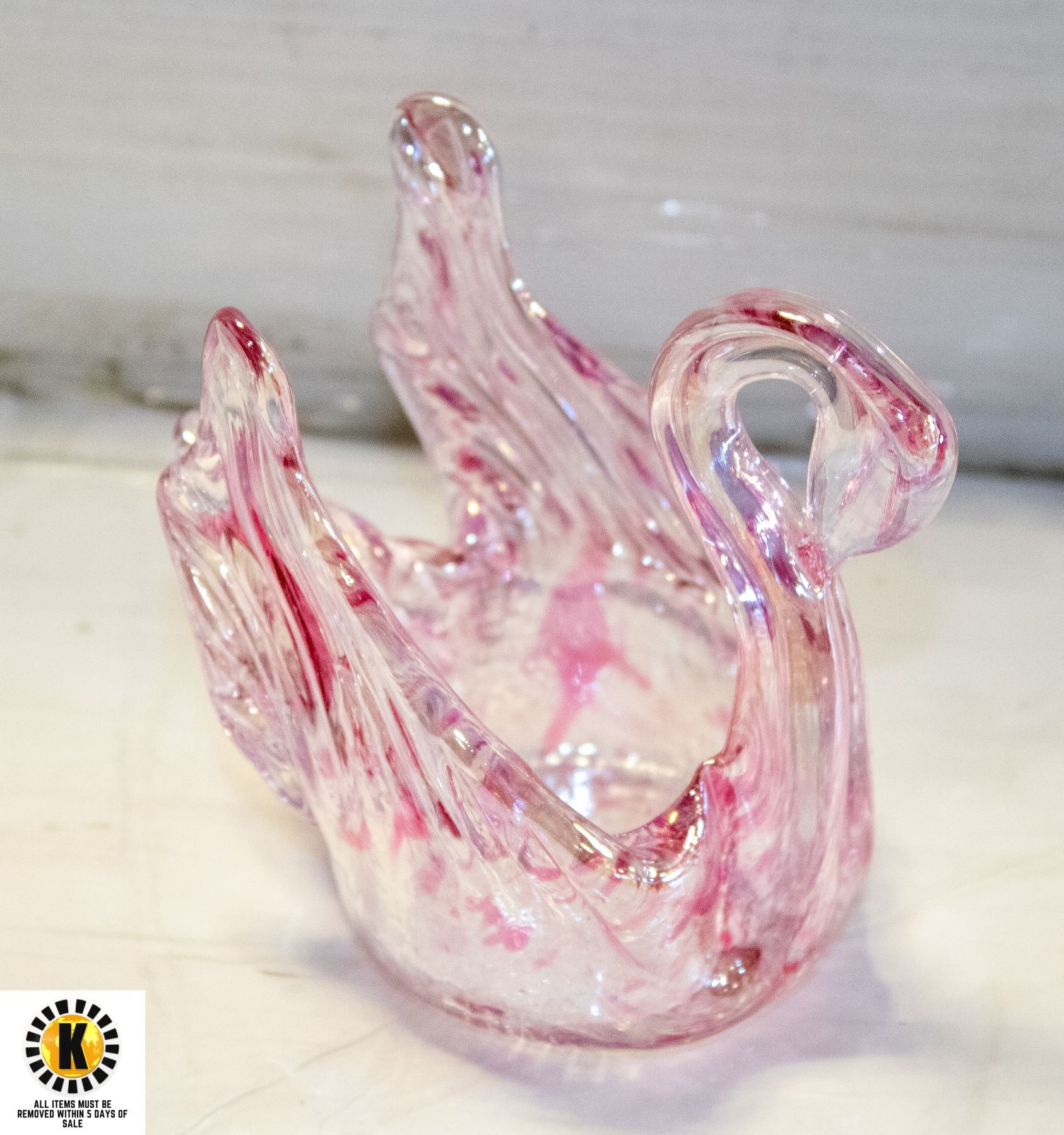 HANDBLOWN PINK IRIDESCENDANT CRYSTAL SWAN TINY DISH