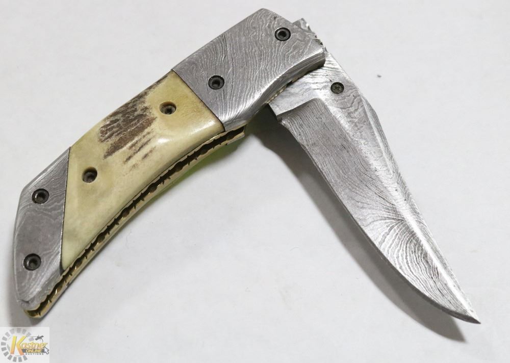 BONE DAMASCUS POCKET KNIFE