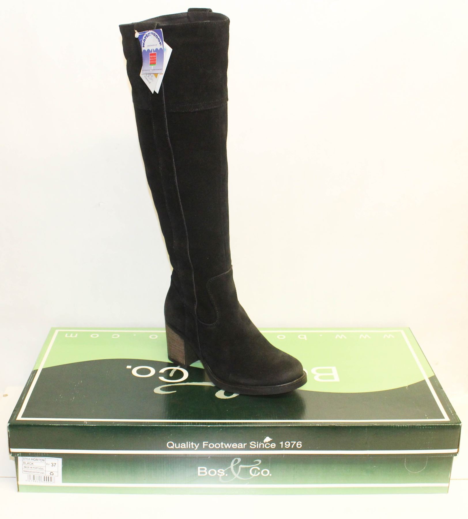BOS. & CO. SZ 6.5 BLACK HORTON HEELED BOOTS