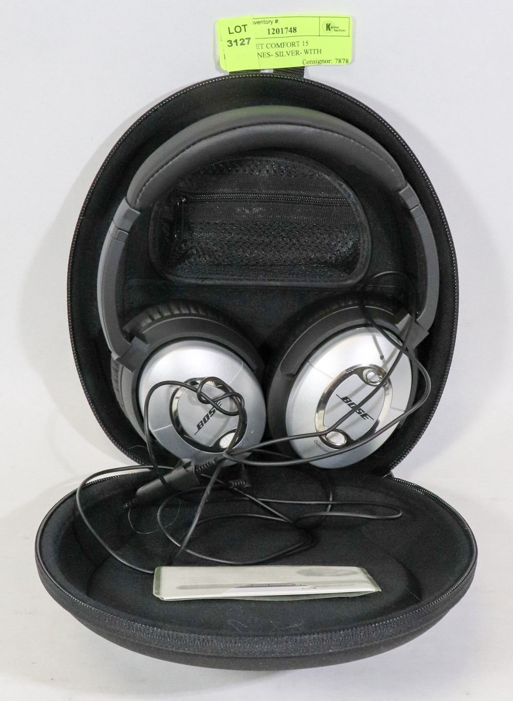 BOSE QUIET COMFORT 15 HEADPHONES- SILVER- WITH