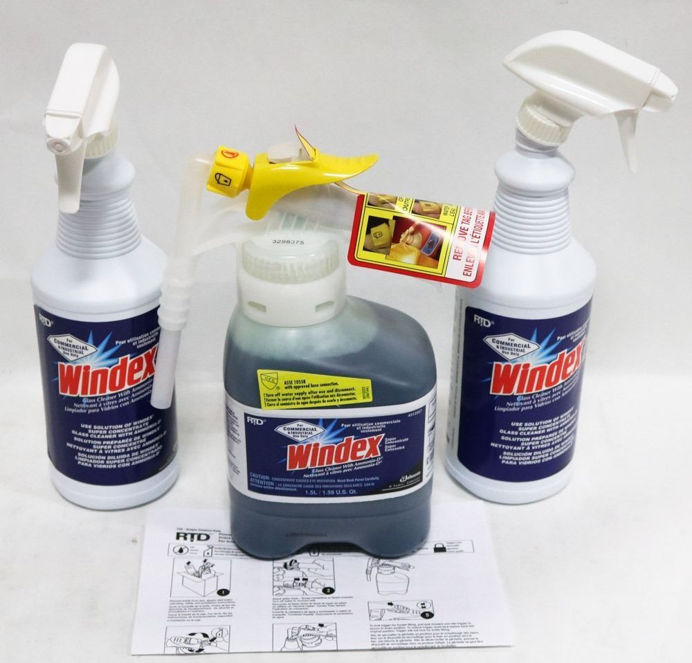 CLEANER WITH AMMONIA-D, COMES WITH 2 APPLICATOR BOTTLES. WINDEX GLASS CLEANER WITH AMMONIA-D SUPER CONCENTRATE YIELDS 13.25 LITERS OF READY-TO-USE WINDEX GLASS CLEANER PER 1.5-LITER CONTAINER. FOR COMMERCIAL AND INDUSTRIAL USE. GENERAL
