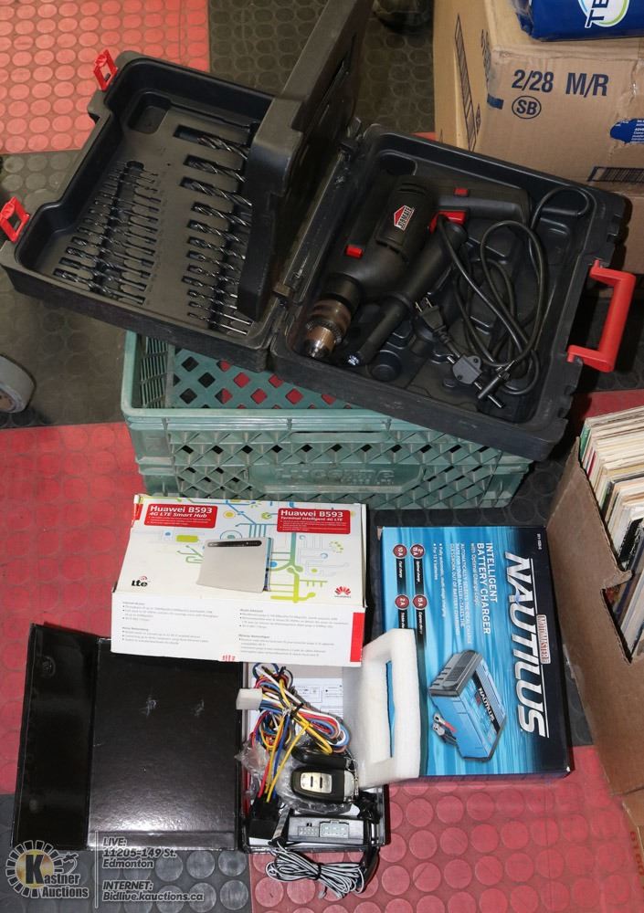 CHARGER, BATTERY CAR STARTER , ALARM, ROUTER 100MBPS. TOOLS