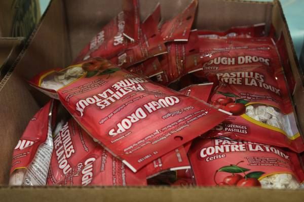 BOX: 48 BAGS OF 25 LOZENGES CHERRY COUGH DROPS