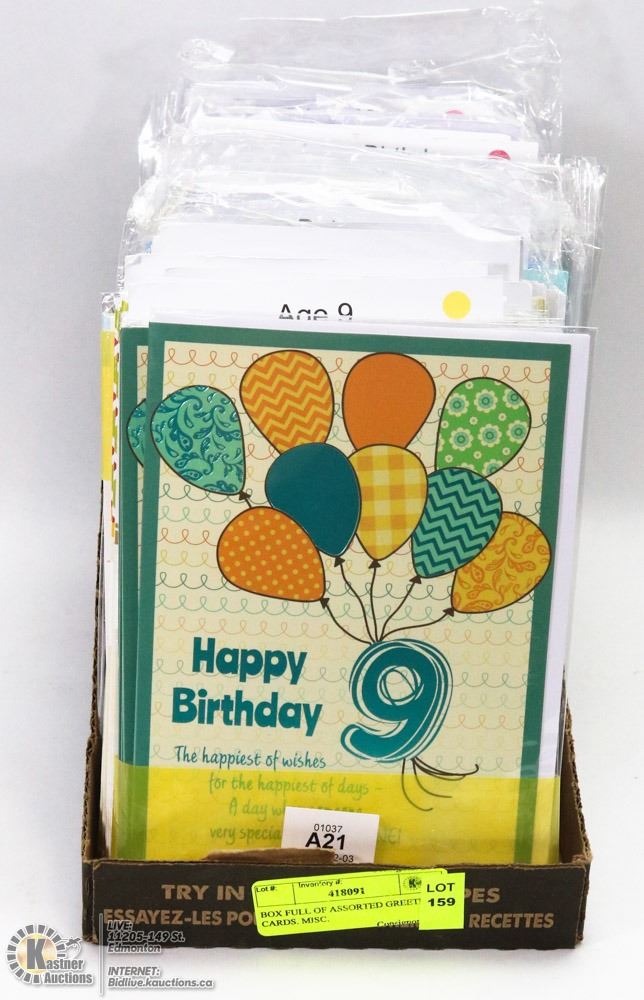 BOX FULL OF ASSORTED GREETING CARDS. MISC.