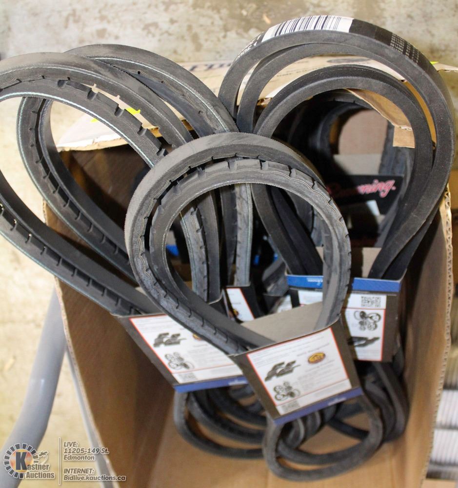 BOX FULL OF ASSORTED SIZED FAN BELTS