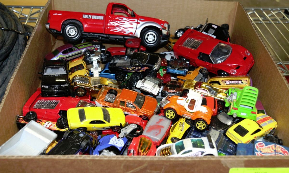 BOX FULL OF DIECAST CARS AND TRUCKS
