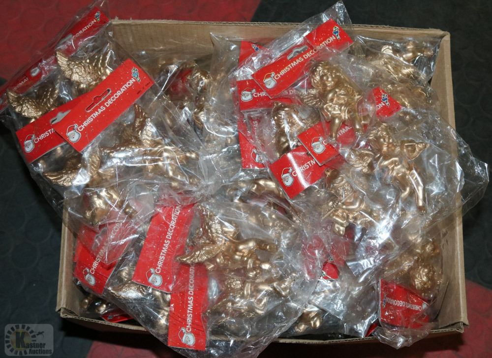 BOX FULL OF NEW GOLD COLORED CHERUB ORNAMENTS