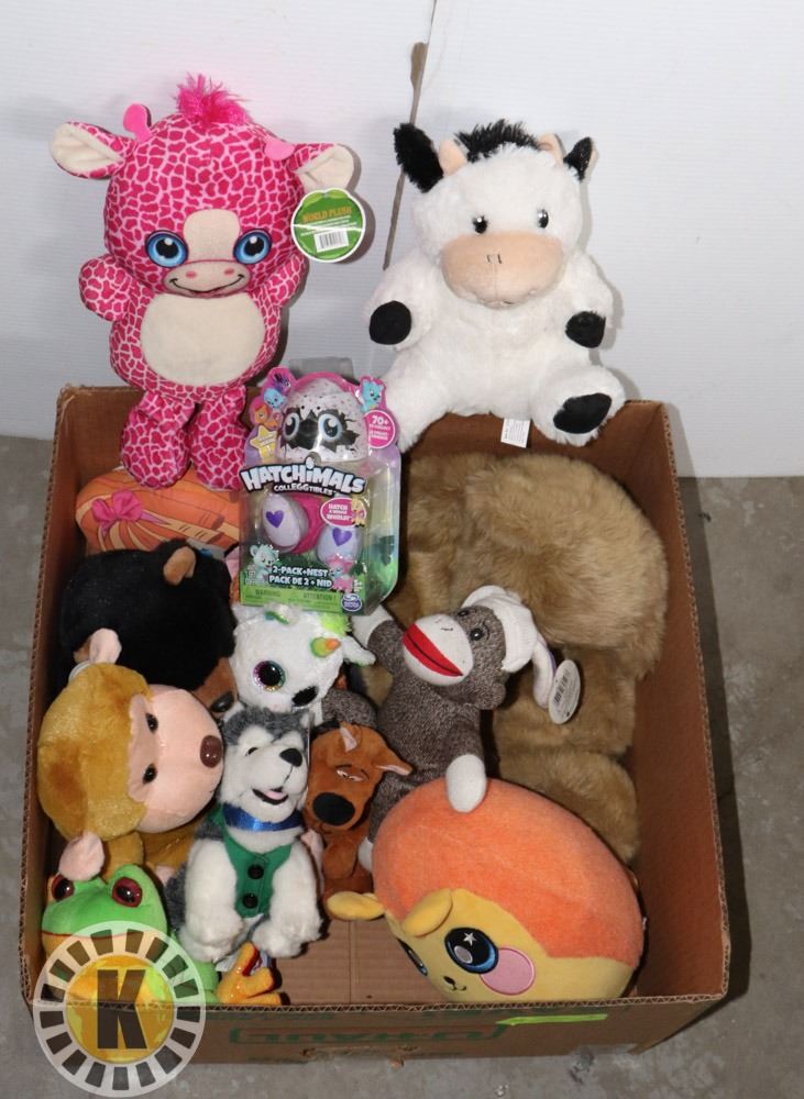 BOX FULL OF NEW STUFFED TOYS INCL. HUSKY, GANZ,